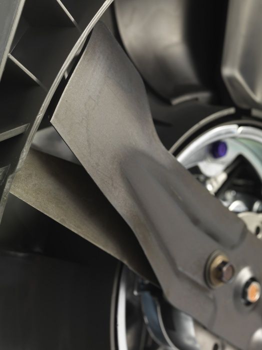 Dva nože pootočené o 15° zajistí více řezů, jemnější zpracování trávy, lepší sběr a účinnější mulčování.
